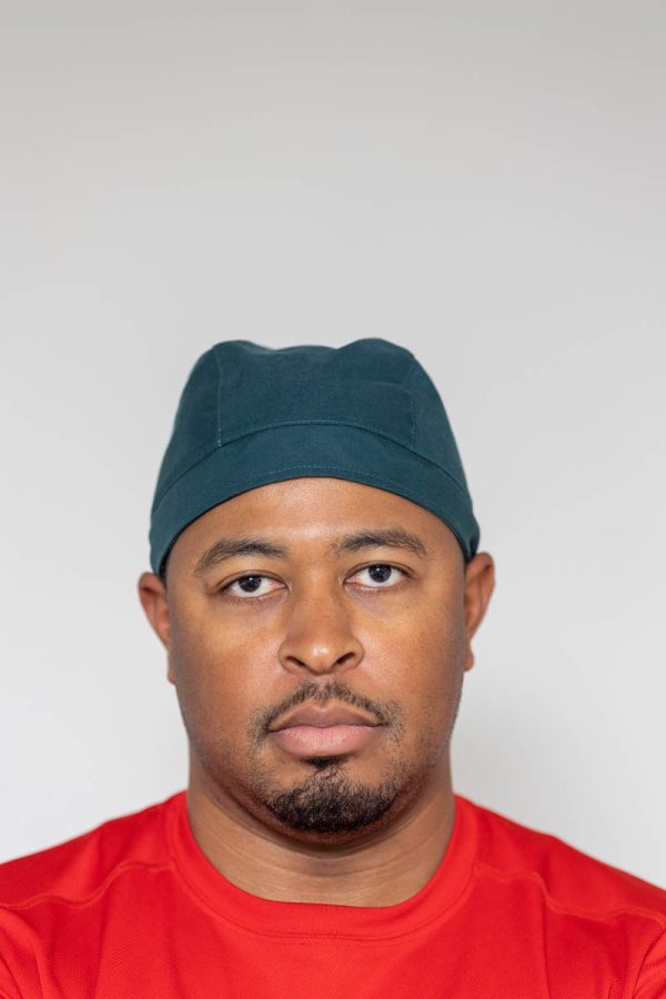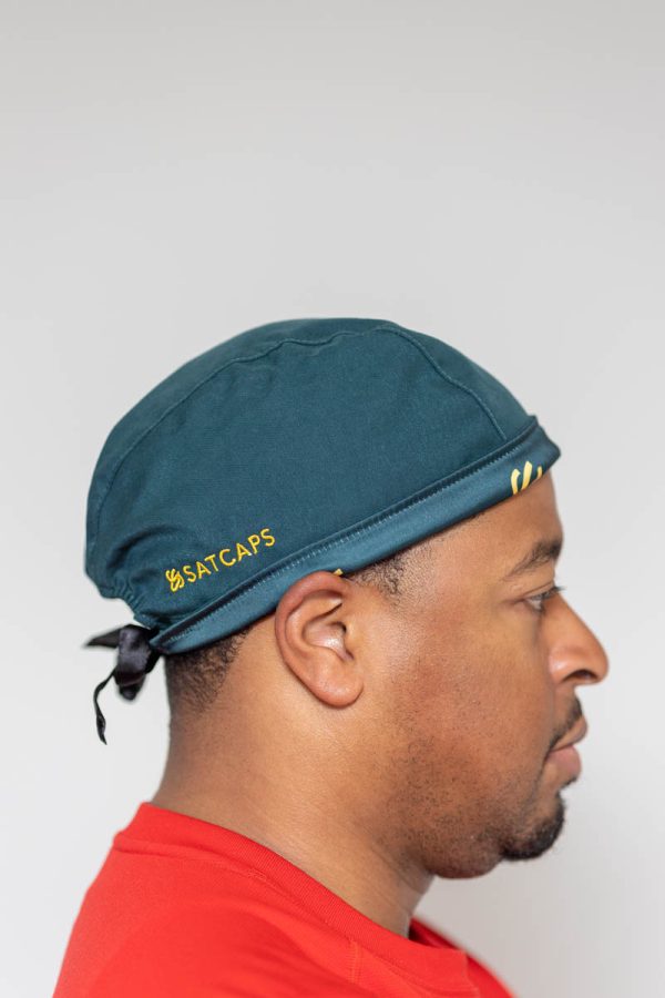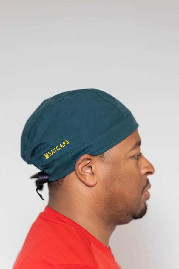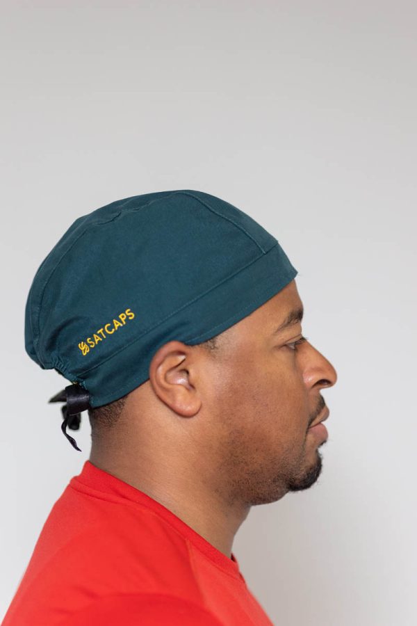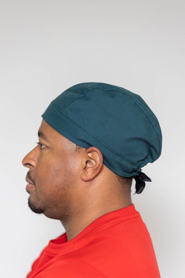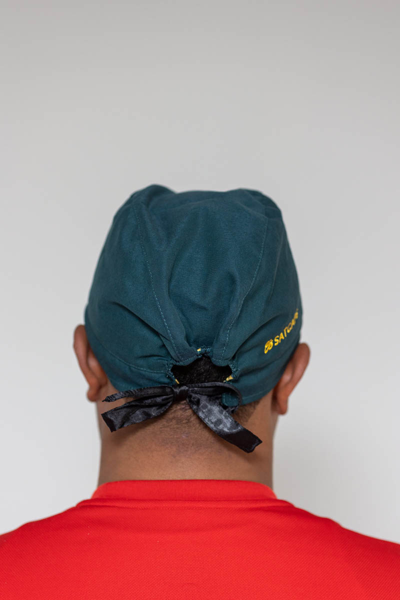 Adjustable, tie-back scrub hat, Back elastic for a better fit